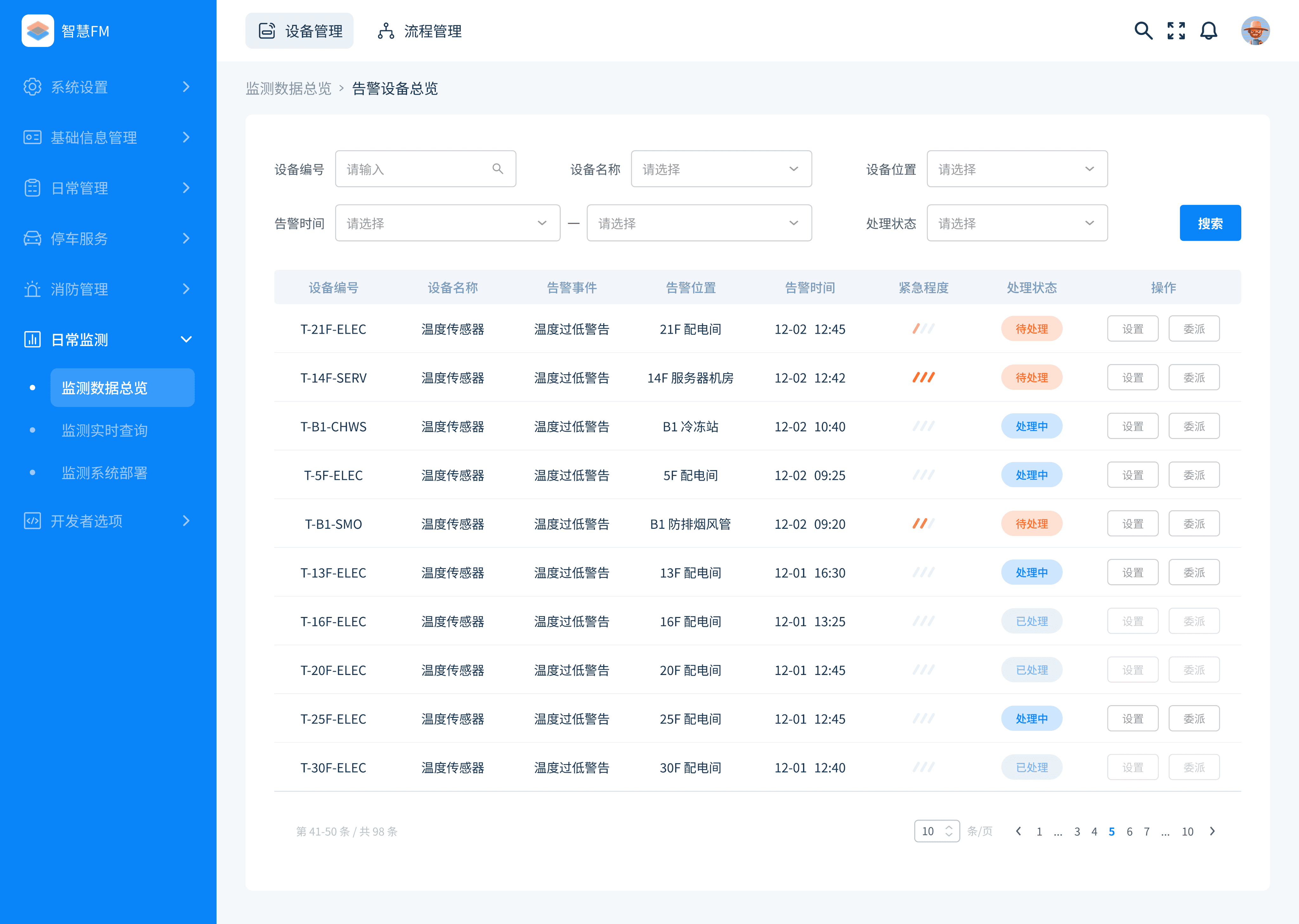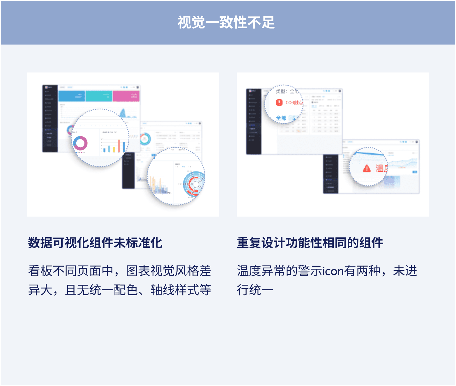 <告警设备总览>页存在图标风格不统一,信息层级不清晰,系统可见性弱等问题,影响用户识别效率和使用体验。随着设计系统建立,我以该页面为改造对象,以验证系统在旧页面优化中的应用价值。