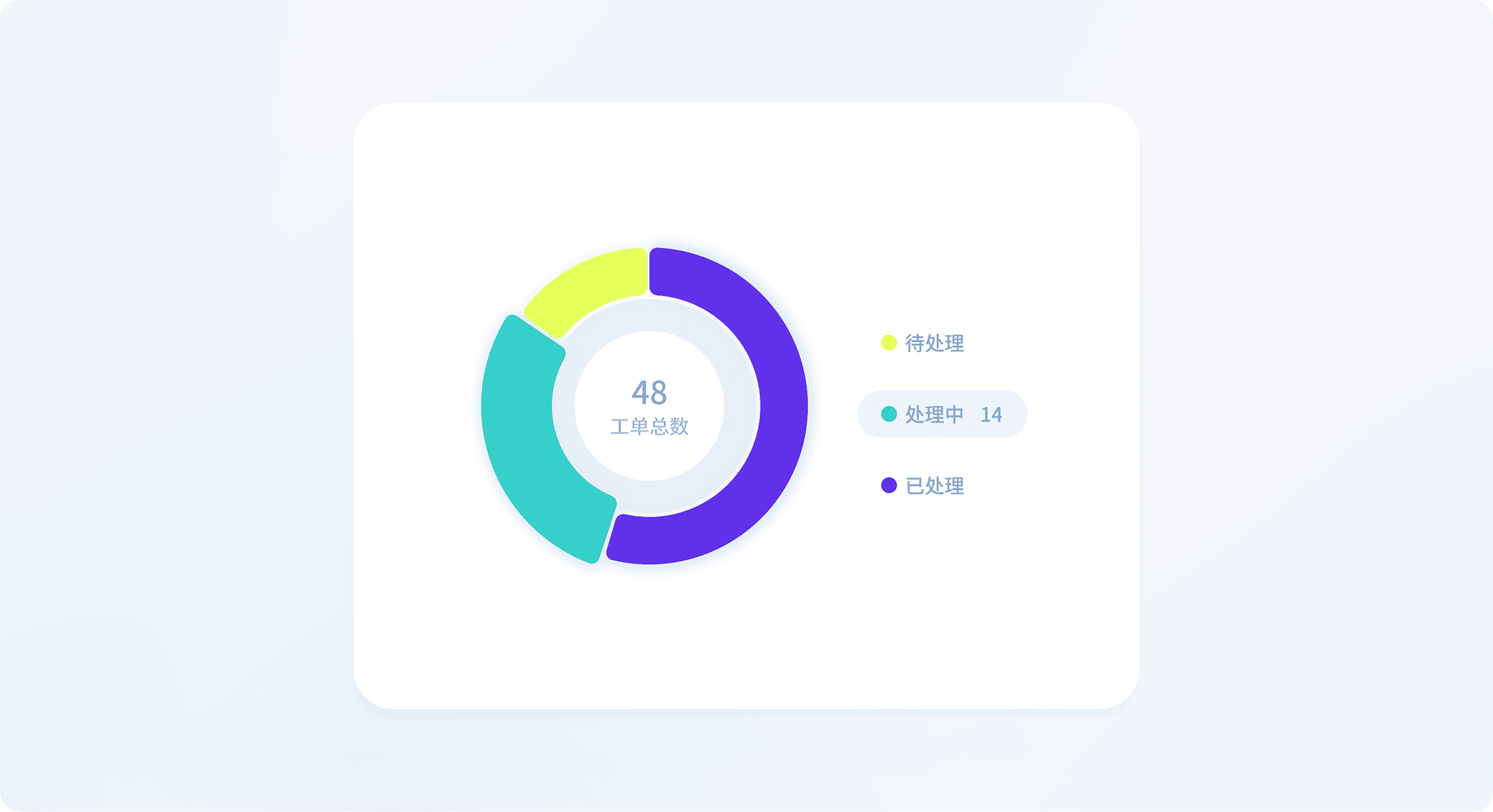 展示同一维度下数据的占比关系。适合呈现总量构成、分类或比例关系的信息,例如:能耗构成占比,工单类型或处理状态比例等。