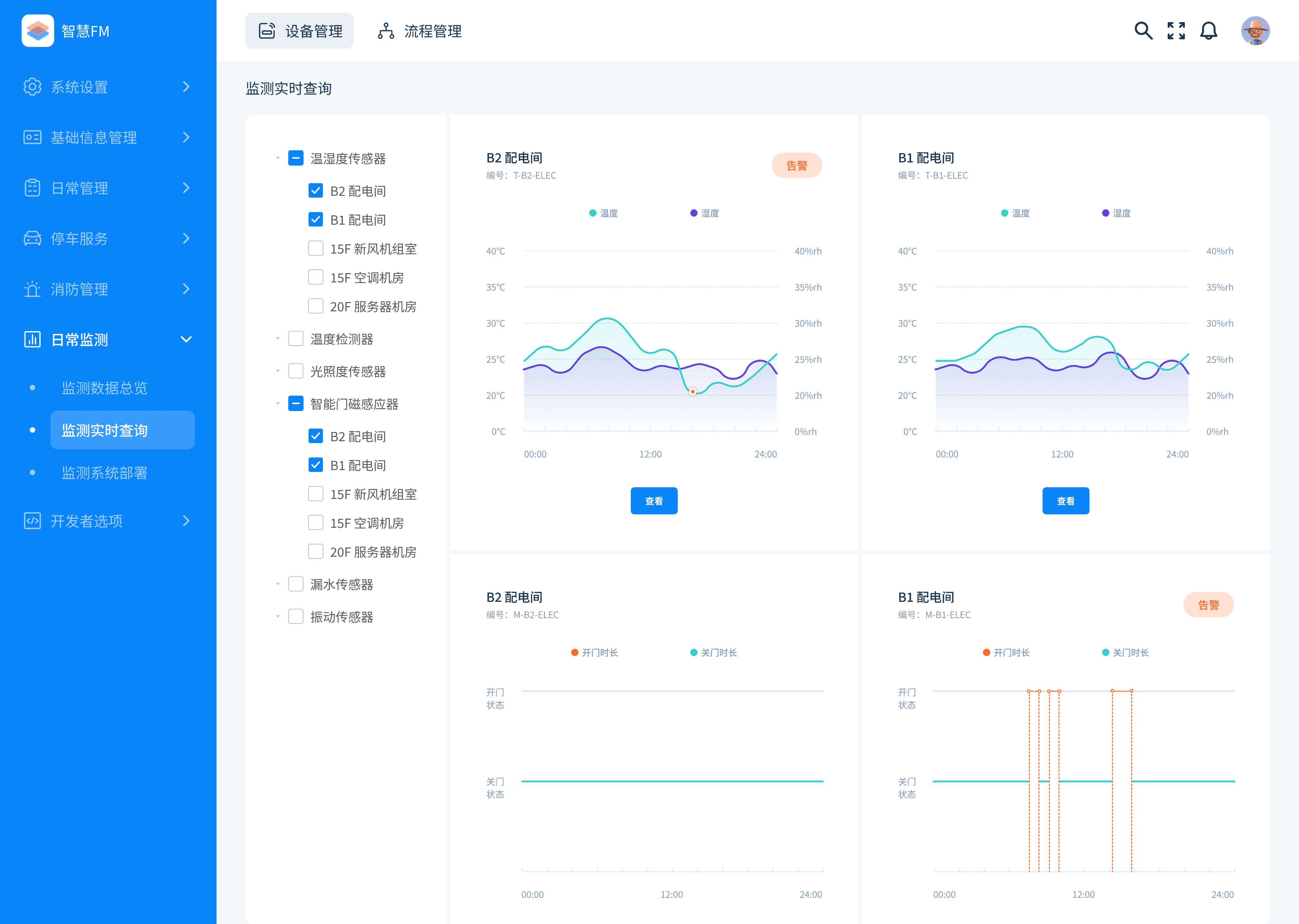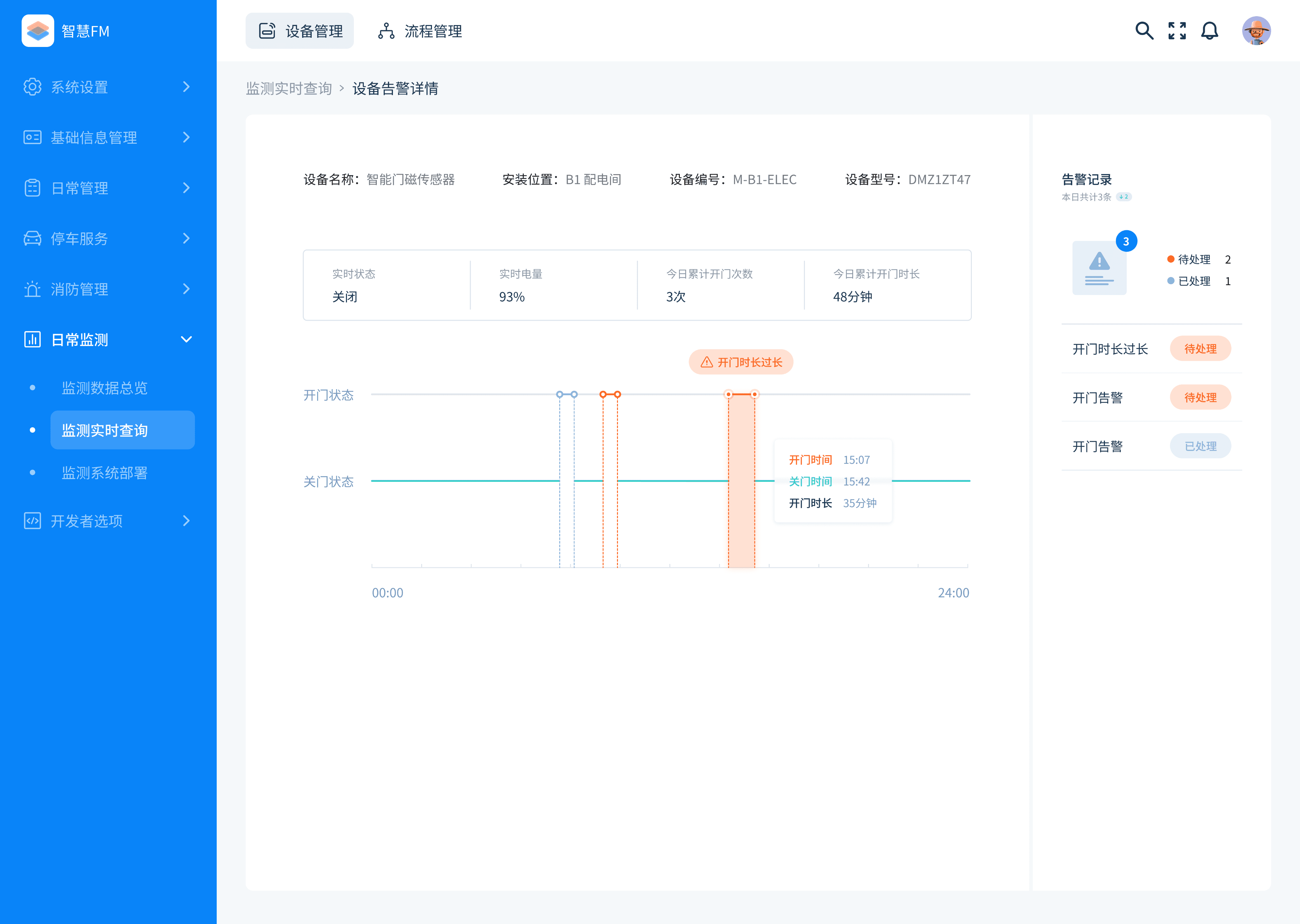 未制定清晰的字号使用规则。例如,在展示门磁传感器当日监测详情的版面中使用了7种字号,重要信息不够突出,视觉上层次感不足。
