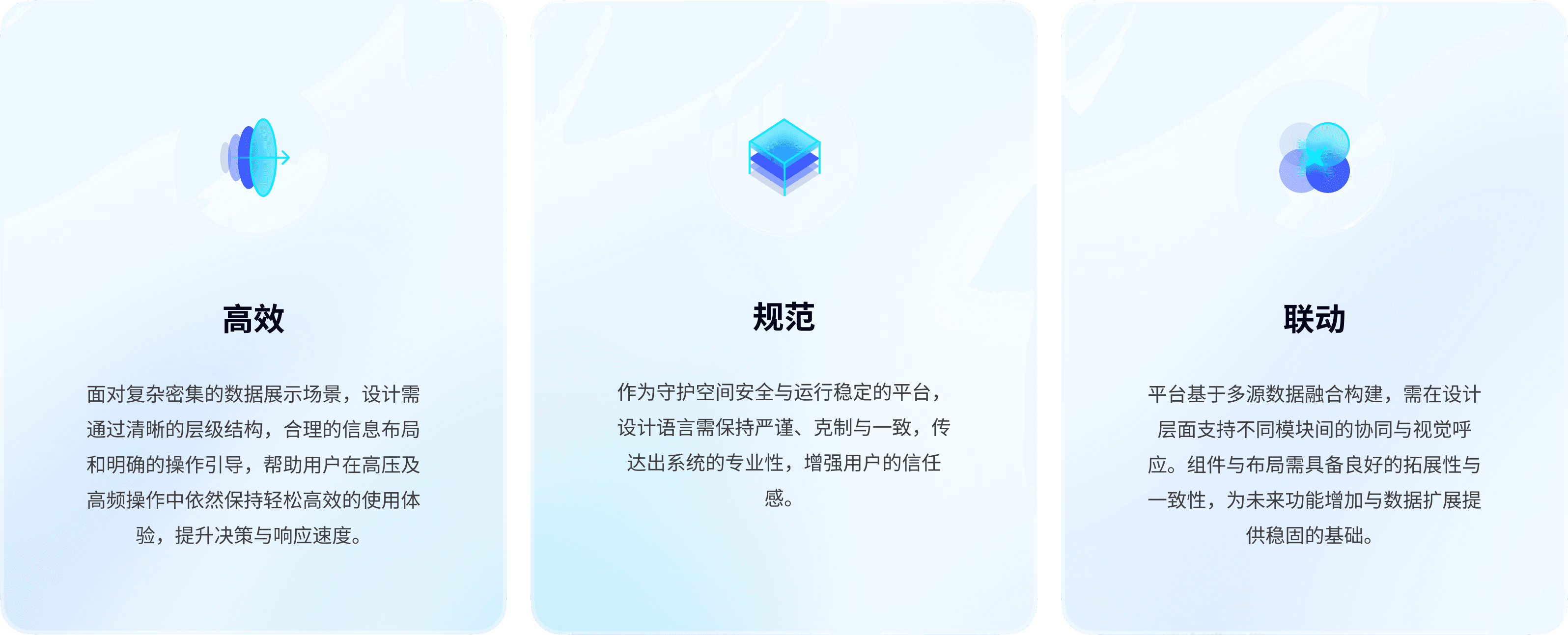 结合产品的气质与特性,并为后续设计提供可衡量的内在标准,我为整体设计风格提炼出三个关键词:高效、规范、联动。