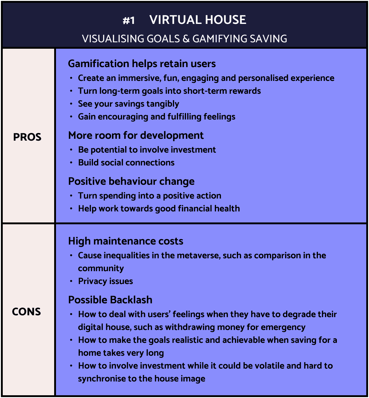 After receiving the client's feedback, the team was inclined towards the virtual house concept. To reduce bias, we wrote down and compared the pros and cons of the two concepts to decide the direction.