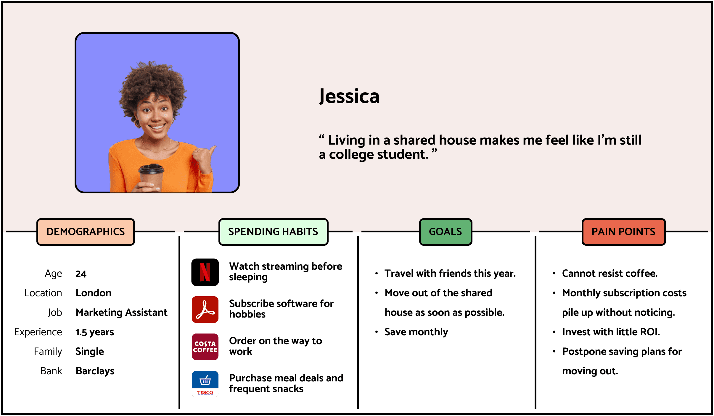 To help the client better empathise with our users, we came up with the persona Jessica. Jessica as a user character, worked along with the group and enabled us to adapt to various scenarios more easily in the concept development as well.
