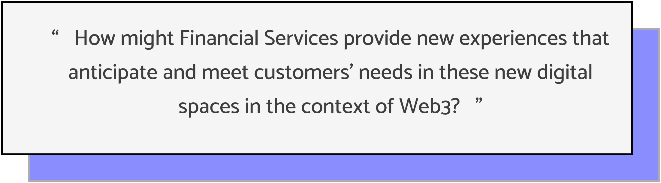 “ How might Financial Services provide new experiences that anticipate and meet customers’ needs in these new digital spaces in the context of Web3? ”