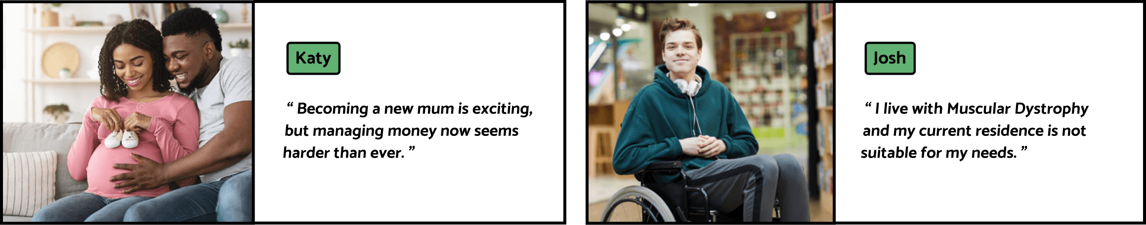 Our service also aims to provide value to differently-abled people like Josh who wants to not only meet his saving goals towards a home but have added saving requirements to adapt the home to his needs. Metaville will provide customised saving goals based on users' personal circumstances and we will ensure a broad range of our users can interact with our product by being compatible with assistive technology and interaction gears. Usability is integral to our users' experience so we will make sure we adhere to WCAG guidelines, for example, people with motor disabilities or visual impairments who might use a joystick for navigation purposes should know which elements they are focusing on and will require our interfaces to be consistent and logical.